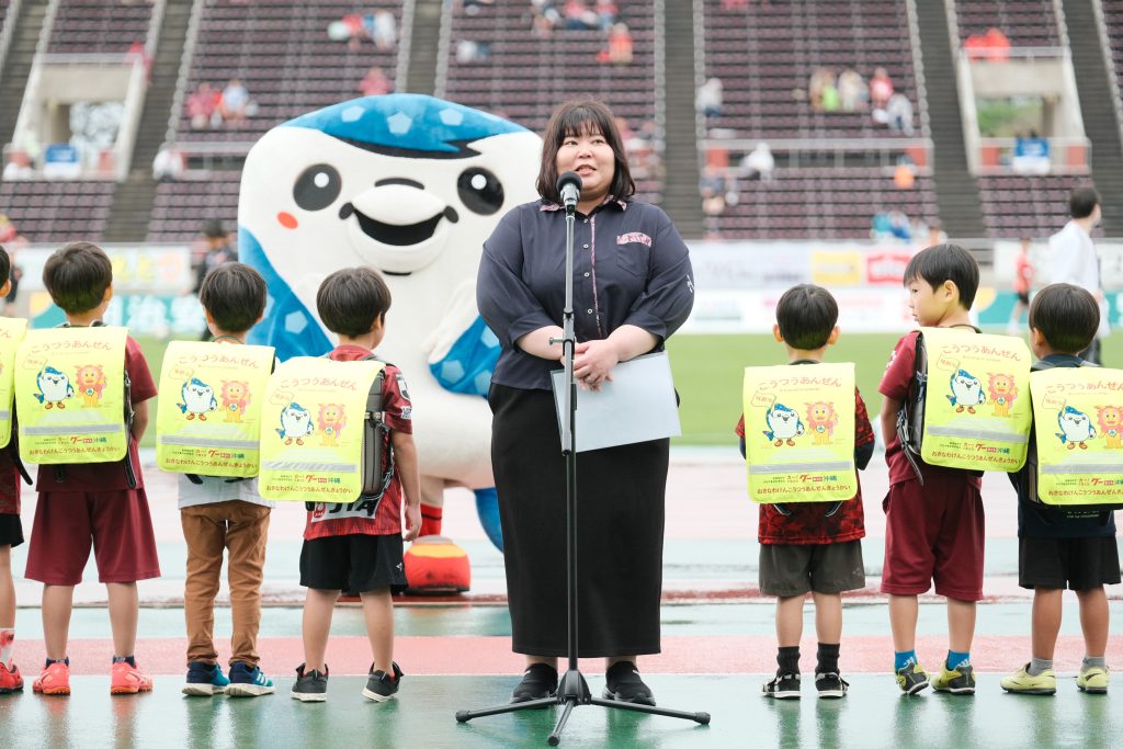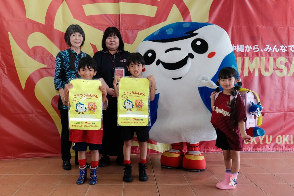 FC琉球は2023年9月、沖縄県警・沖縄県交通安全協会連合会と交通安全活動等に関する覚書を締結。以来、交通安全教室への参加のほか、沖縄県の新小学生1年生へジンベーニョのイラストをあしらったランドセルカバーの贈呈や、交通安全活動協力費にご協力いただいた方々へのジンベーニョオリジナルクリアファイルの進呈などを通して、啓発活動に取り組んでおります。