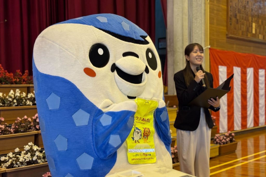 株式会社プロトソリューション メディア事業部 グー沖縄 友寄可南子 様より、ジンベーニョとともにランドセルカバーを贈呈いただきました。